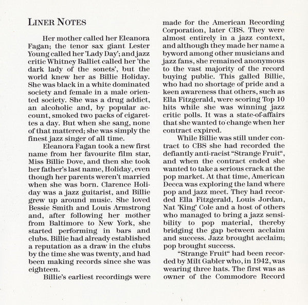 ARTIST: Billie Holiday