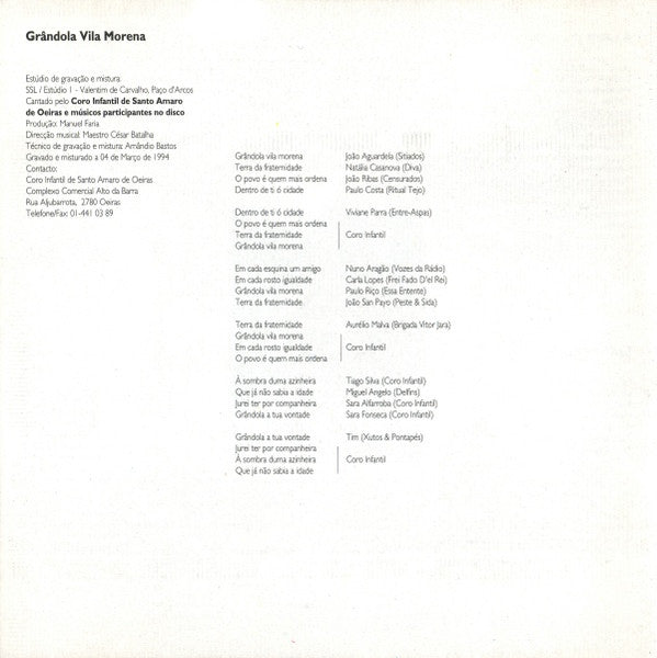 TITLE: Filhos Da Madrugada Cantam José Afonso