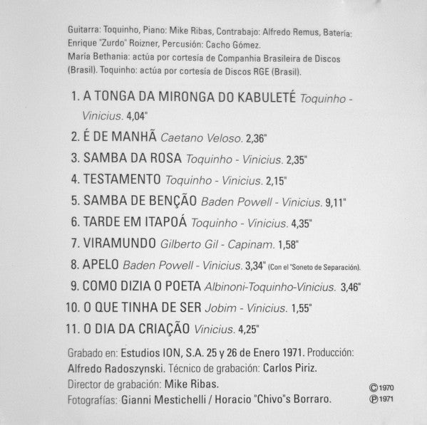TITLE: Vinicius De Moraes Con María Creuza, María Bethania y Toquinho